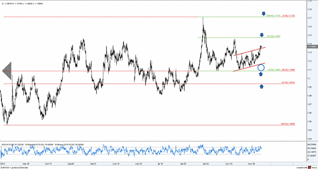 Notowania EURUSD po ostatniej dynamicznej zwyżce doprowadziły do wybicia górą z formacja kanału wzrostowego. Tym samym, na obecnym etapie zanegowany został preferowany przeze mnie w ostatnich raportach wariant prospadkowy. Przebicie oporów zlokalizowanych w rejonie 1,1345 otwiera teoretycznie drogę do umocnienia wspólnej waluty względem dolara co najmniej w okolice 1,1475, gdzie usytuowane jest 61% zniesienie sekwencji spadkowej ukształtowanej na tym rynku na przestrzeni dwóch poprzednich miesięcy. Taki wariant jest w tej chwili scenariuszem bazowym. Niemniej jednak na wspomnianych oporach oczekuję ponownego uaktywnienia się strony podażowej, a w konsekwencji powrotu kursu analizowanej pary do wnętrza wspomnianej wcześniej konsolidacji.